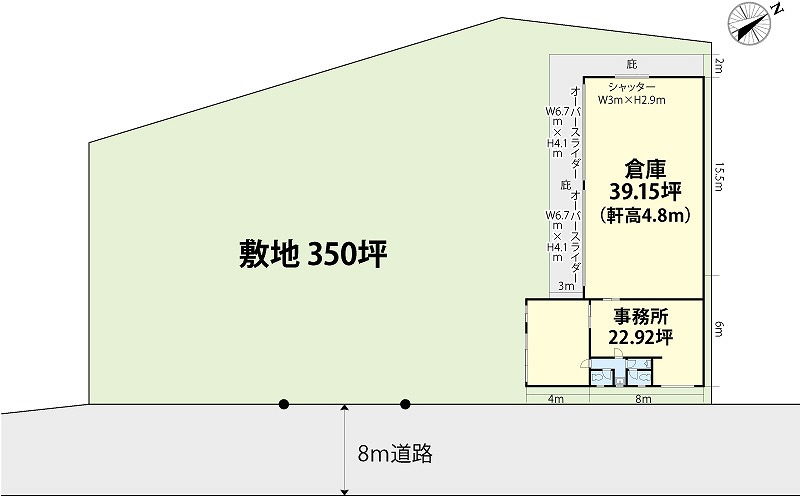 倉庫:39.15坪 事務所:22.92坪 |