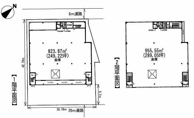 倉庫:1階249.22坪 2階289.05坪 |