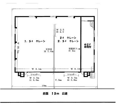 | 備考 | トイレ 中二階事務所 1.5t・2t・2.5tクレーン 天井高7.6m |