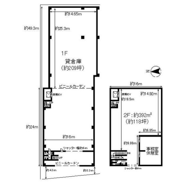 倉庫:1階:約209坪 2階:約118坪 |