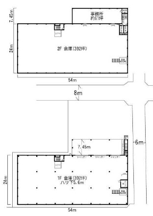 倉庫:1・2階各392坪 事務所:61坪 |