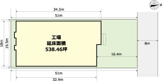 | 備考 | クレーン2t リフト500kg・950kg トイレ 事務所付 天井高:1階4m、2階4m |