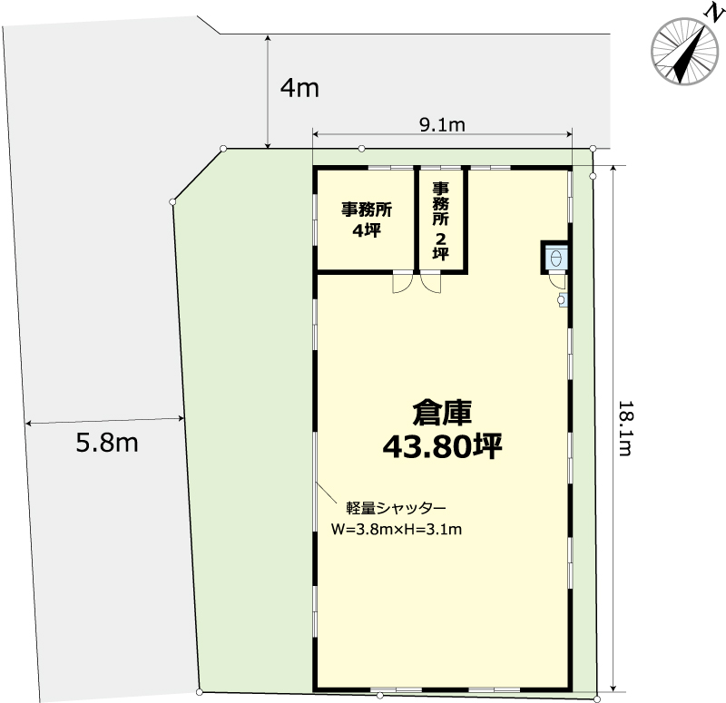 | 備考 | トイレ 軽量シャッター(W=3.8m×H=3.1m)1ヶ所 |