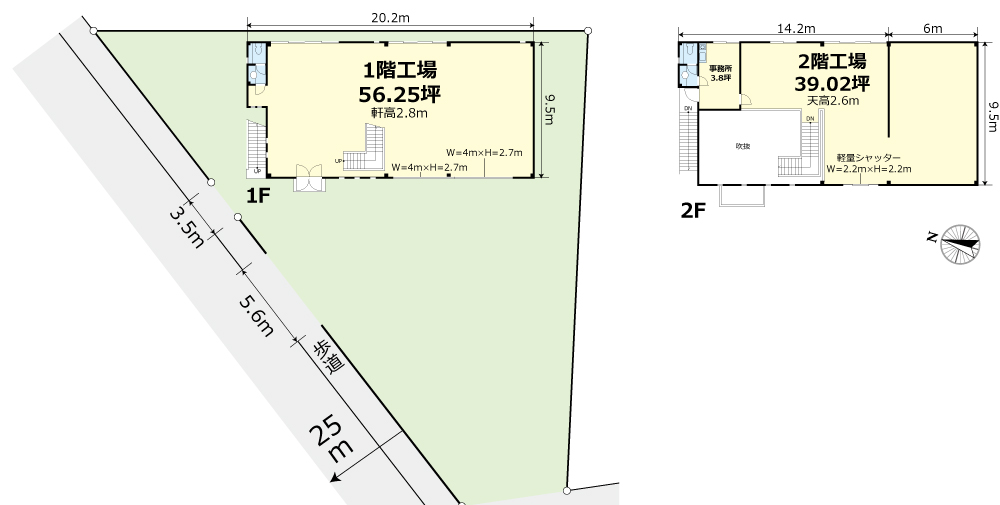 工場:1階56.25坪 2階42.83坪 |
