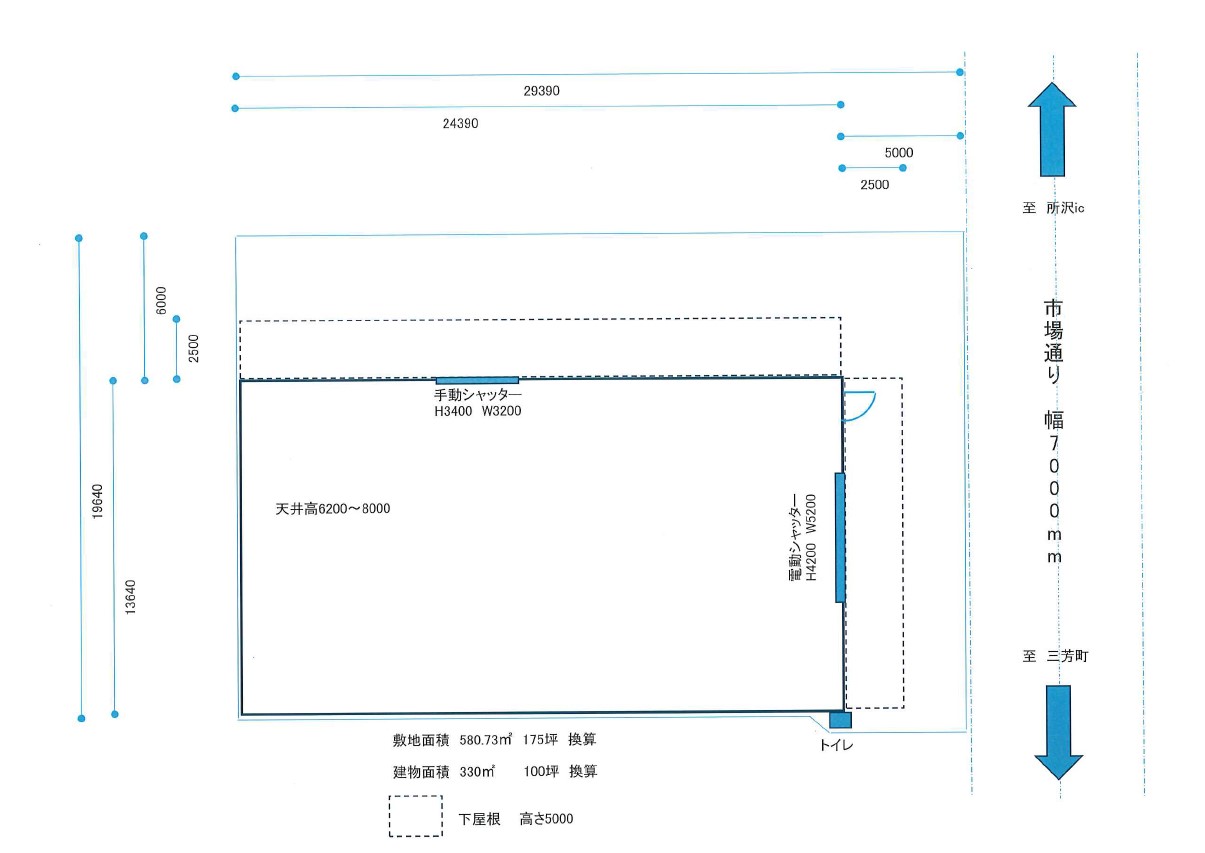 | 備考 | 電動シャッター(H4.2m×W5.2m) 手動シャッター(H3.4m×W3.2m) 天井高6.2m~8m |