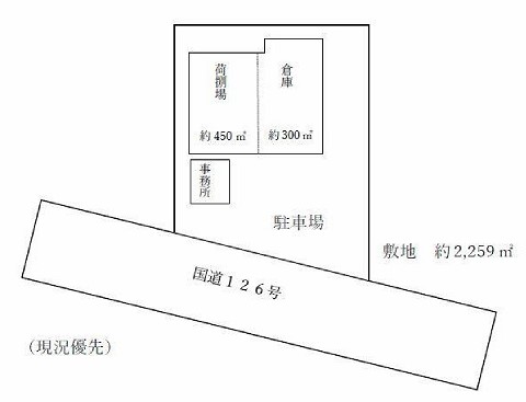 | 備考 | 倉庫90.75坪 荷捌場136.12坪 2階建プレハブ事務所 トイレ クレーン 大型車進入可 |