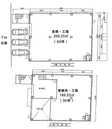 倉庫:1階62坪 2階50坪 |