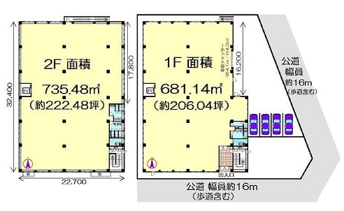 倉庫:1階206.04坪 2階222.48坪 |