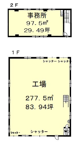 工場:1階83.94坪 事務所:2階29.49坪 |