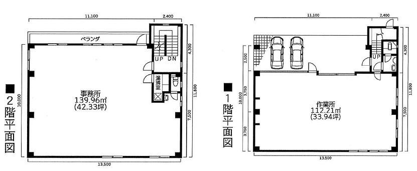 倉庫:1階33.94坪 事務所:2階42.33坪 |