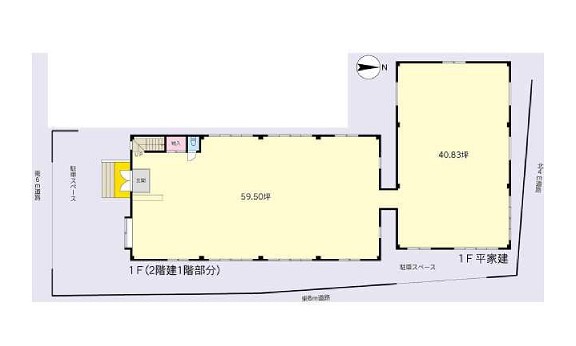 倉庫:平家建40.83坪 2階建1階部分59.50坪 |
