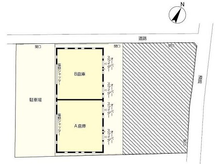 | 備考 | 天井高5.5m~9.3m オーバースライダー(W=4m×H=4m)4か所 電動シャッター(W=7m×H=4.5m)2ヶ所 |