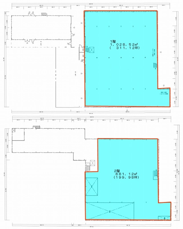 倉庫:1階311.12坪 2階199.98坪 |