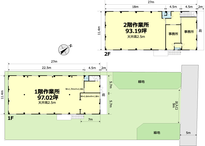 倉庫:1階97.02坪 2階93.19坪 |