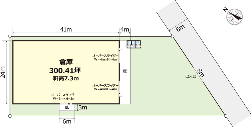 | 備考 | オーバースライダー(W=4m×H=4m)2ヶ所 オーバースライダー(W=3m×H=3m)1ヶ所 |