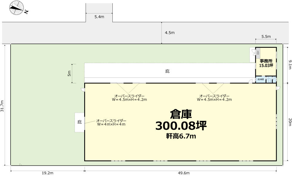 | 備考 | オーバースライダー(W=4.5m×H=4.2m)4ヶ所、(W=4m×H=4m)1ヶ所 |