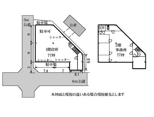 倉庫:1階76.75坪 事務所:2階76.75坪 |
