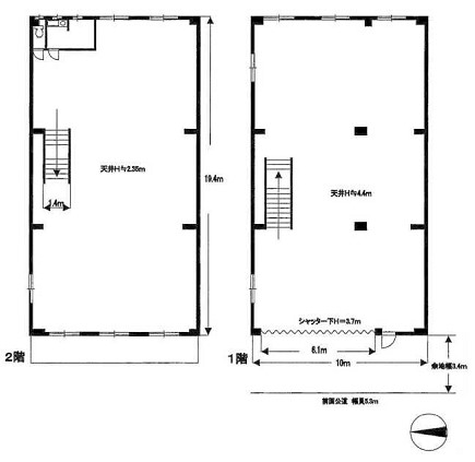 | 備考 | 天井高:1階4.4m 2階2.3m トイレ 動力 |